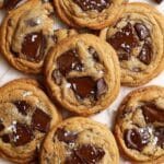 These bakery-style chocolate chip cookies are rich, buttery, and flavored with vanilla and a hint of honey for a butterscotch undertone. Featuring crisp, caramelized edges and a chewy, gooey center, these cookies are the perfect balance between crunchy and soft. With dark chocolate chunks folded throughout and a sprinkle of flaky sea salt on top, they deliver an irresistible gourmet cookie experience right from your oven.