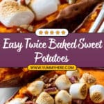 Twice Baked Sweet Potatoes with Marshmallows offer a delightful twist on a classic side dish, perfect for Thanksgiving or any cozy meal. These sweet potatoes are baked, scooped, mashed with flavorful ingredients like maple syrup and cinnamon, then baked again topped with gooey marshmallows and crunchy pecans for a sweet and savory treat.