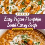 Vegan Curried Pumpkin Lentil Soup Recipe