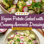 This Vegan Potato Salad is a creamy, flavorful, and refreshing side dish perfect for gatherings and make-ahead meals. It combines tender baby red potatoes with a rich avocado-based dressing, enhanced by fresh herbs, capers, and a touch of seasoned salt. Topped with crisp radishes, this salad is a satisfying vegan alternative to traditional potato salad.