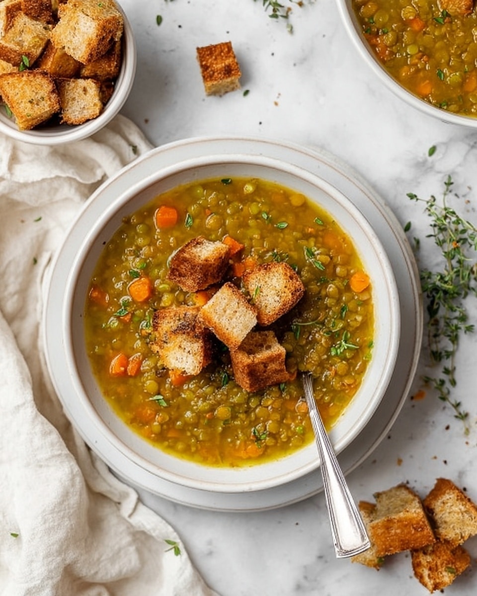 This Vegan Split Pea Soup Recipe pairs wonderfully with crusty bread or garlic toast for dipping. For something lighter, a simple green salad with a lemony vinaigrette balances the richness of the soup. I also love serving it alongside roasted Brussels sprouts or baked sweet potato fries for a full, nourishing meal.