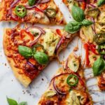 - Add toppings: Spread the pizza sauce evenly over the stretched dough. Sprinkle the mixed cheeses over the sauce, then layer with the thinly sliced red onions, roasted red peppers, quartered or chopped artichoke hearts, and jalapeño slices if you like some heat. Drizzle a little extra-virgin olive oil over the top for added richness.