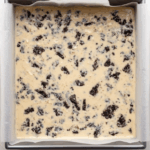 - Add Cookie Topping: Sprinkle the remaining ½ cup of Oreo cookie pieces evenly over the top of the fudge. Gently press them into the surface so they adhere and don’t fall off.