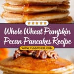 Delicious and wholesome Whole Wheat Pumpkin Pecan Pancakes made with nutrient-rich whole wheat flour and a perfect blend of pumpkin and warm spices. These pancakes are lightened with egg whites and enriched with chopped pecans, making a flavorful and healthy breakfast option. Ideal for fall or any time you crave a cozy, spiced pancake treat.