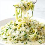 - Combine and serve: Stir the prepared Alfredo sauce into the cooked zucchini noodles. Garnish with fresh parsley and additional parmesan cheese if desired. Serve immediately.